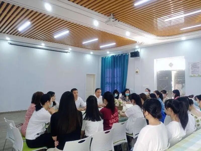 2022年9月19日上午,黄冈师范学院教育学院院长陈中文、副院长黄克斌、学前教育系主任路雪与学前教育专业实习带队老师陈思等一行4人前往黄冈市园丁幼儿园,深入走访实习生。出席本次座谈会的有黄冈市园丁幼儿园园长林少玲、副园长张海英,园丁幼儿园指导教师以及全体在园实习生。