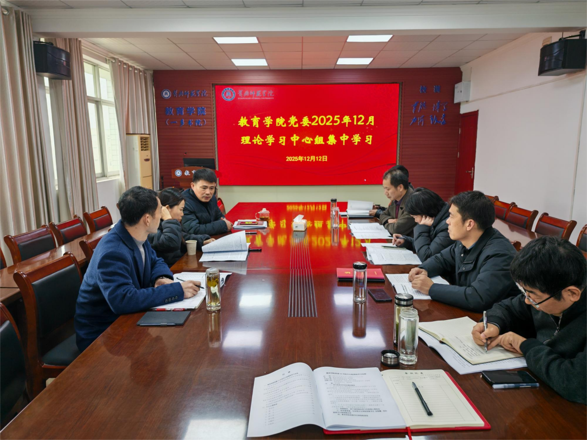 为深入学习贯彻党的二十届四中全会精神,进一步提升学院党委理论学习中心组学习实效,12月12日,教育学院(一多书院)党委理论学习中心组在致远楼616会议室开展12月份集中理论学习。学校旁听组成员、校纪委副书记骆丽娟列席指导,学院中心组全体成员参加会议。会议由学院党委书记钟劲松主持。