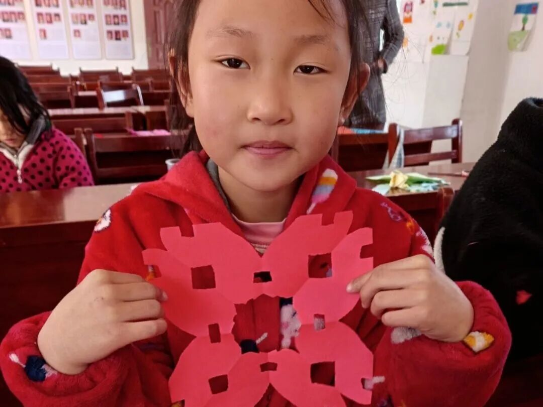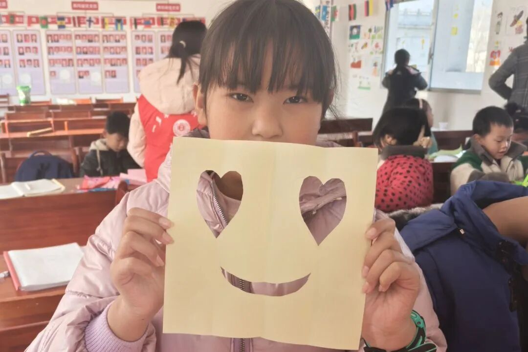 活动最后,孩子们手捧自己剪出的作品,相机定格住这美妙的画面,一张张剪纸映着笑脸,成为这个岁末最温暖的画面。