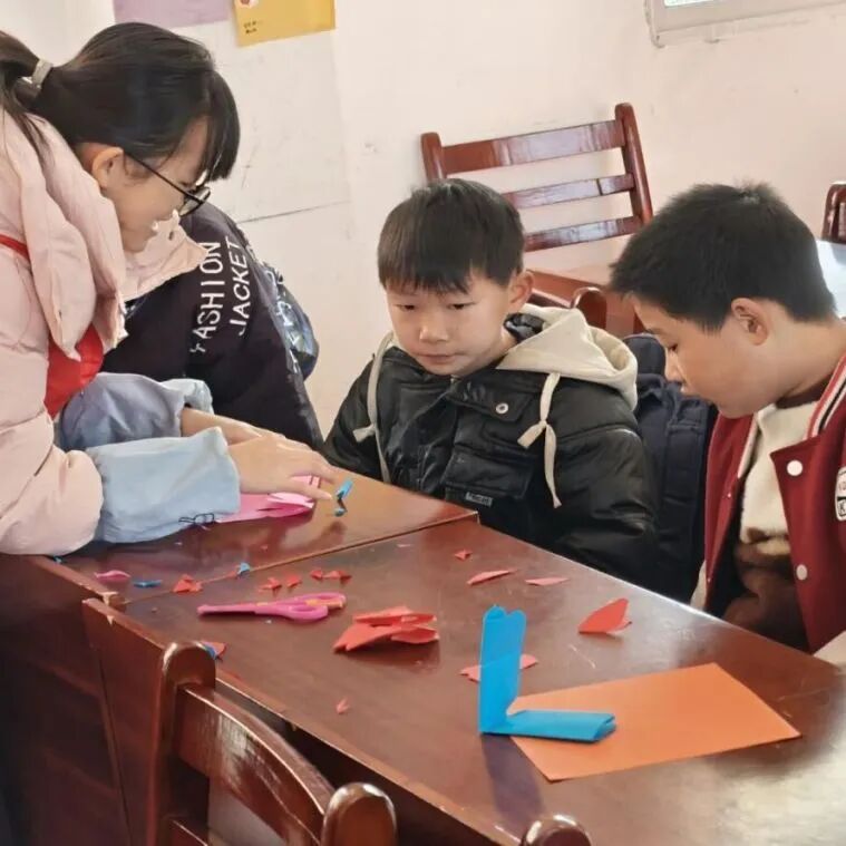 岁末迎福,纸间生情。12月6日,在罗田县黄岗庙村,黄冈师范学院一多书院“启明星”社会实践团队的志愿者们开启了一场以“岁末剪福、纸韵传情”为主题的剪纸活动。孩子们在志愿者的带领下,亲手剪出一张张红彤彤的“福”字,在剪纸的韵律中感受传统文化的魅力,迎接新年的到来。