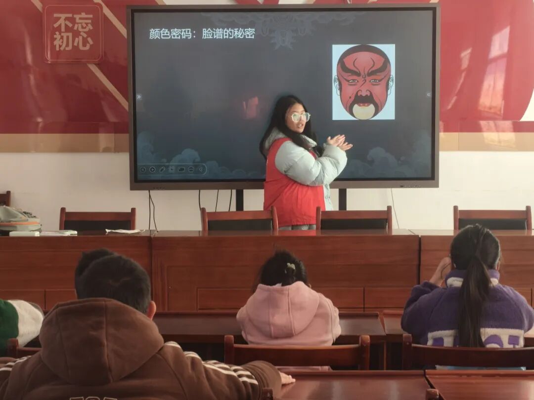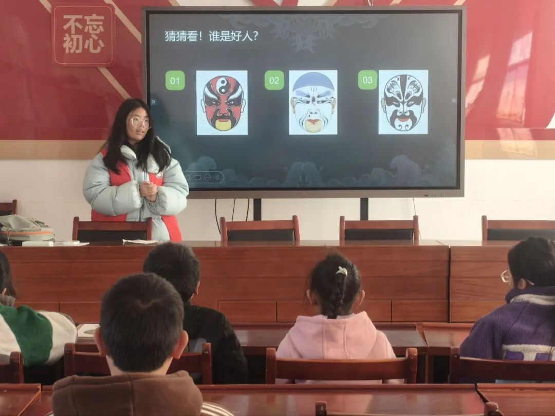 冬意渐浓,文化暖心。11月29日上午,黄冈师范学院一多书院"启明星"社会实践团队走进罗田县黄冈庙乡村“希望书屋”,开展了一场以"脸谱绘韵:国粹与文化感知坊"为主题的文化志愿活动。通过生动讲解、趣味互动和创意绘制,志愿者们带领孩子们领略京剧脸谱的独特魅力,在色彩与线条间感受中华优秀传统文化的深厚底蕴。