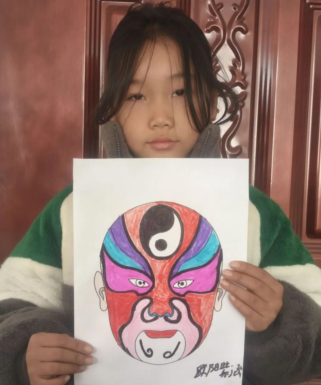 在最后的"表情脸谱秀"上,孩子们踊跃上台展示作品,用稚嫩而自信的声音介绍创作理念。一张张色彩鲜明、创意纷呈的脸谱凝聚着孩子们对传统文化的理解:有的用红色表达内心的勇敢与热情,有的用黑色展现认真与坚毅,还有的通过色彩组合传递复杂的情感体验。热烈的掌声回荡在“希望书屋”内,传统文化的种子也悄然在孩子们心中生根发芽。