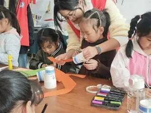 最让孩子们兴奋的,是纸杯龙定格动画的制作环节:志愿者们耐心演示“裁剪、粘贴、上色”的步骤,提醒大家“剪刀不碰尖、胶水不乱甩”;孩子们分组协作,有的画龙鳞、有的贴鳞片,彩色纸杯在巧手下变成了灵动的“龙身”。