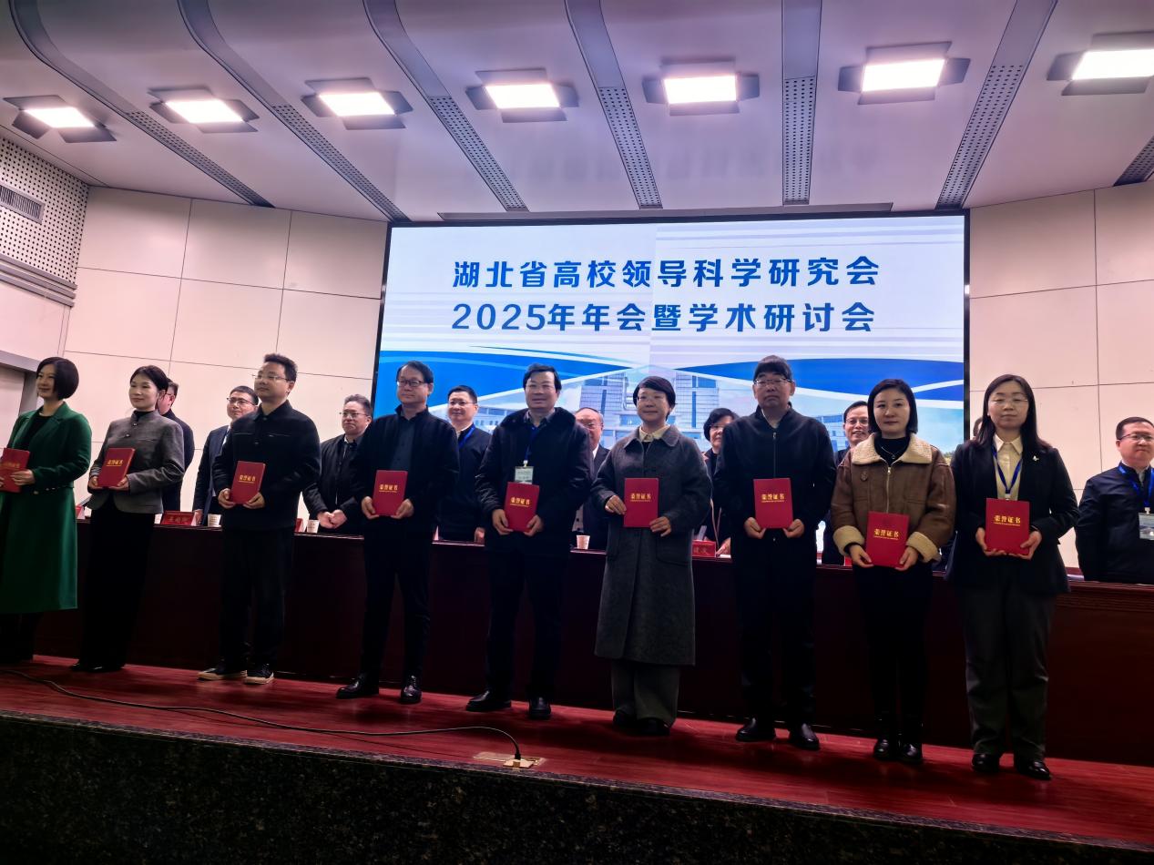 1月17日至18日,湖北省高校领导科学研究会2025年年会暨学术研讨会在湖北工程学院顺利举行。我校党委副书记陈朝阳带队参会,教育学院副院长韦耀阳教授一同参加会议,且在会议中荣获优秀论文奖励,上台领取荣誉证书,充分展现了我校在高校领导科学研究领域的扎实成果与良好风采。