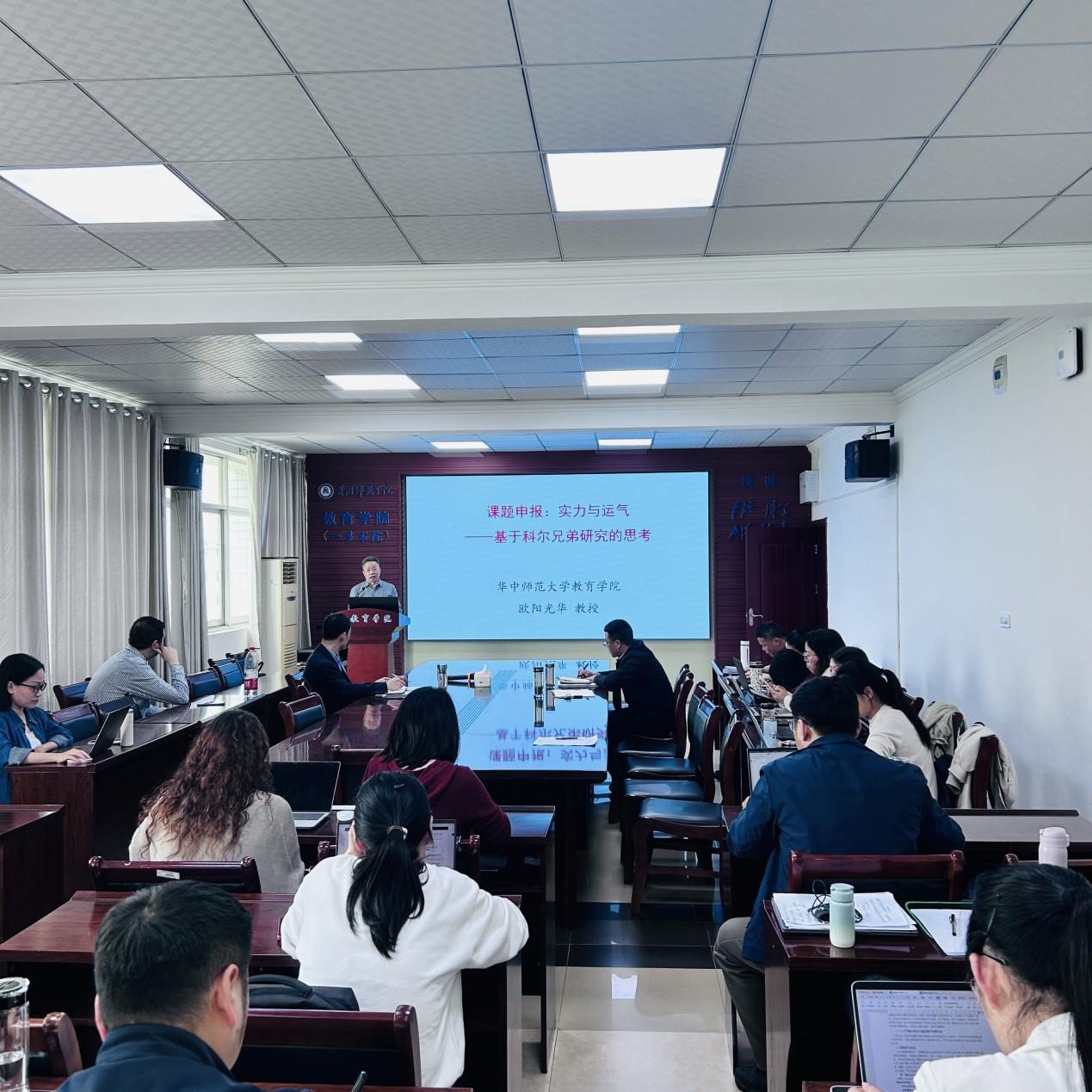 为切实提升学院教师国家社科基金、教育部人文社科基金项目申报能力,精准破解申报过程中的重点难点问题,4月12日下午,教育学院(一多书院)举办社科基金项目申报专题讲座,特邀华中师范大学欧阳光华教授莅临主讲,学院全体专任教师全程参与,助力教师夯实申报基础、明晰申报思路。