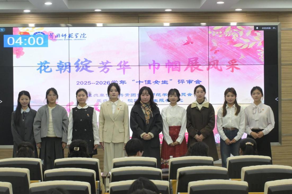 3月24日下午,在黄冈师范学院2025-2026学年度“十佳女生”的评选中,我院本科生成如意、研究生熊乐瑶分别以第1名与第4名的成绩获评校级“十佳女生”荣誉称号。